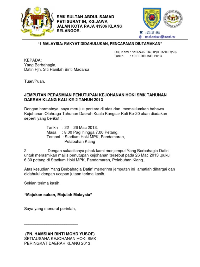 Surat Jemputan Yb Ke Sukan Tahunan Pdf
